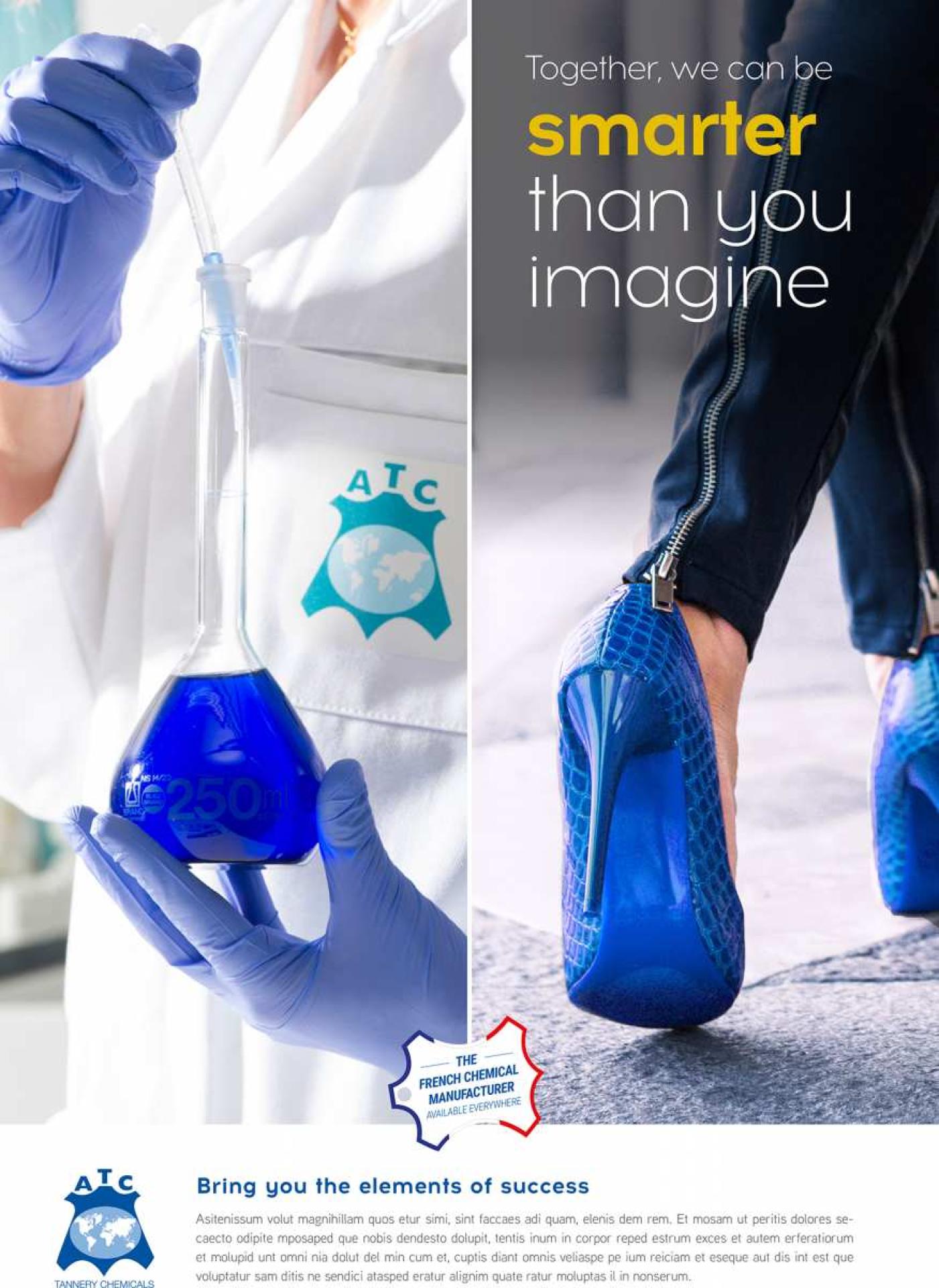 Les visuels présentés ci-dessus ont été réalisé dans le cadre d’une campagne publicitaire pour la société ATC Concepteur et fabricant français de produits chimiques pour l’industrie du cuir.